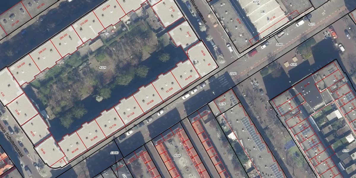 Het adres ligt op het perceel GVH21-AD-4324, dat zich in de kadastrale gemeente 's-Gravenhage bevindt. De gemiddelde perceeloppervlakte in de kadastrale gemeente 's-Gravenhage is 908,69 m². Dit perceel is met zijn 7273 m² dus groter dan gemiddeld. De grootste perceeloppervlakte in de kadastrale gemeente is 9,1 ha. De kleinste oppervlakte bedraagt 0 m². Er zijn 147 adressen aanwezig op het perceel. In de Basisregistratie Kadaster (BRK) werden de grenzen van het perceel geregistreerd op 02-12-2003.