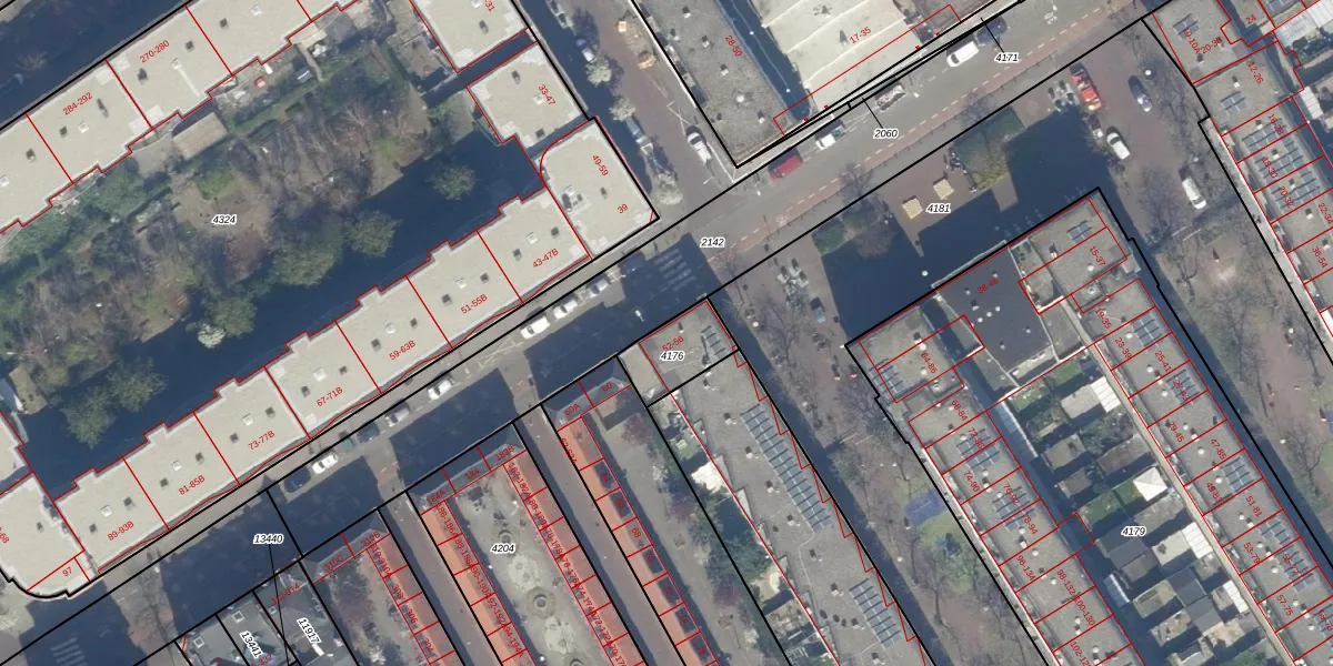 Het adres ligt op het perceel GVH21-AD-4176, dat zich in de kadastrale gemeente 's-Gravenhage bevindt. De gemiddelde perceelgrootte in 's-Gravenhage is 908,69 m². Dit perceel is kleiner: de perceeloppervlakte bedraagt 147 m². Het kleinste perceel in de kadastrale gemeente is 0 m² groot. De grootste perceeloppervlakte is 9,1 ha. Op het perceel zijn 2 adressen aanwezig. In de Basisregistratie Kadaster (BRK) werden de grenzen van het perceel geregistreerd op 08-12-2003.
