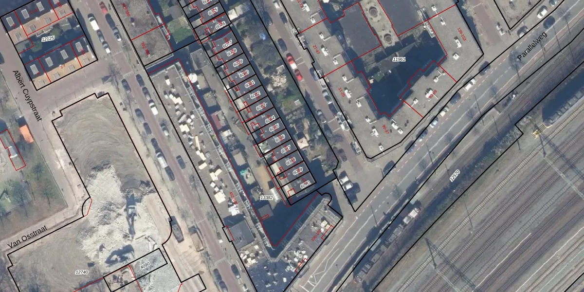 Het perceel waarop het adres ligt is GVH08-L-6087. De afkorting 'GVH08' staat voor kadastrale gemeente 's-Gravenhage. Het perceel is 48 m² groot. Dat is kleiner dan de gemiddelde perceeloppervlakte in 's-Gravenhage, dat op 468,2 m² ligt. Het grootste perceel in de kadastrale gemeente is 3,8 ha. Het kleinste perceel heeft een oppervlakte van 0 m². Op het perceel bevinden zich geen andere adressen. De huidige grenzen van het perceel zijn digitaal in de Basisregistratie Kadaster (BRK) geregistreerd op 14-04-2010.