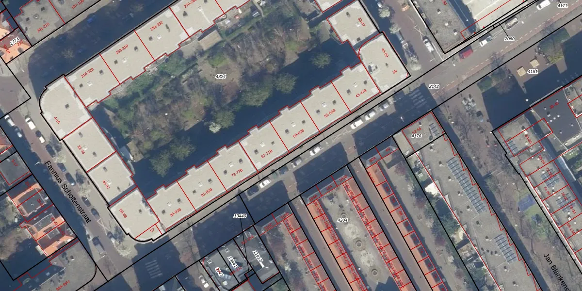 Het adres is gelegen op perceel 4324 in de sectie AD en de kadastrale gemeente 's-Gravenhage. De kadastrale aanduiding is aldus GVH21-AD-4324. De gemiddelde perceeloppervlakte in de kadastrale gemeente 's-Gravenhage is 908,69 m². Dit perceel is met zijn 7273 m² dus groter dan gemiddeld. Het kleinste perceel in de kadastrale gemeente is 0 m² groot. De grootste perceeloppervlakte is 9,1 ha. Op het perceel zijn 147 adressen aanwezig. De huidige grenzen van het perceel zijn digitaal in de Basisregistratie Kadaster (BRK) geregistreerd op 02-12-2003.