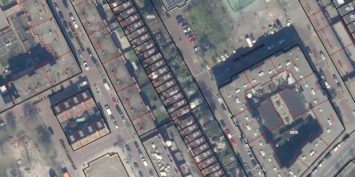Het perceel waarop het adres ligt is GVH08-L-12022. De afkorting 'GVH08' staat voor kadastrale gemeente 's-Gravenhage. Het perceel is 52 m² groot. Dat is kleiner dan de gemiddelde perceeloppervlakte in 's-Gravenhage, dat op 468,2 m² ligt. Het grootste perceel in de kadastrale gemeente is 3,8 ha. Het kleinste perceel heeft een oppervlakte van 0 m². Dit is het enige adres dat aanwezig is op het perceel. De laatste wijziging in het de Basisregistratie Kadaster (BRK) was op 19-09-2003.