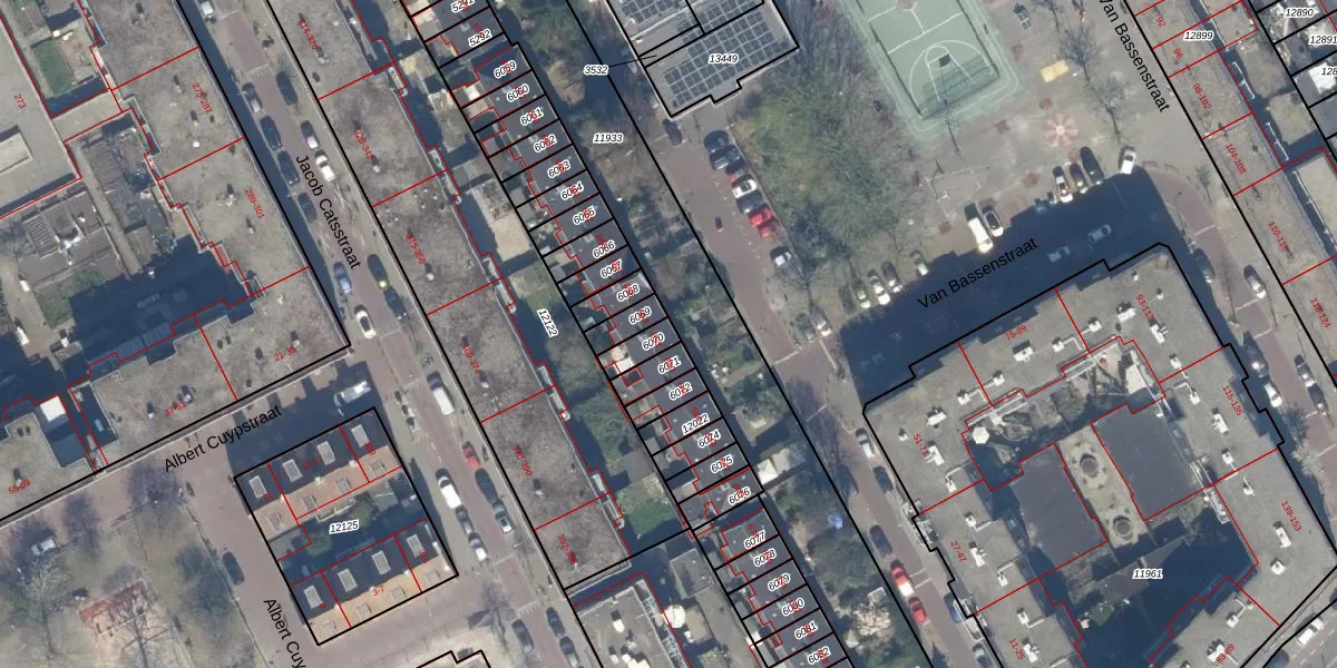 Het perceel waarop het adres ligt is GVH08-L-6070. De afkorting 'GVH08' staat voor kadastrale gemeente 's-Gravenhage. Het perceel is 52 m² groot. Dat is kleiner dan de gemiddelde perceeloppervlakte in 's-Gravenhage, dat op 468,2 m² ligt. De grootste perceeloppervlakte in de kadastrale gemeente is 3,8 ha. De kleinste oppervlakte bedraagt 0 m². Op het perceel bevinden zich geen andere adressen. De huidige grenzen van het perceel zijn digitaal in de Basisregistratie Kadaster (BRK) geregistreerd op 19-09-2003.