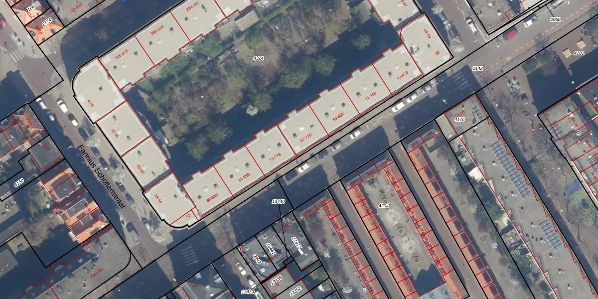 Het adres ligt op het perceel GVH21-AD-4324, dat zich in de kadastrale gemeente 's-Gravenhage bevindt. Het perceel is met 7273 m² relatief groot. Het gemiddelde ligt in de kadastrale gemeente 's-Gravenhage op 908,69 m². Het grootste perceel in de kadastrale gemeente is 9,1 ha. Het kleinste perceel heeft een oppervlakte van 0 m². Er zijn 147 adressen aanwezig op het perceel. De laatste wijziging in het de Basisregistratie Kadaster (BRK) was op 02-12-2003.