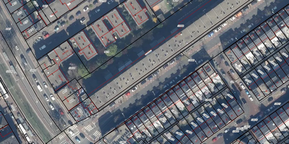 Het adres is gelegen op perceel 13068 in de sectie L en de kadastrale gemeente 's-Gravenhage. De kadastrale aanduiding is aldus GVH08-L-13068. De oppervlakte van het perceel is 3580 m². Dat is groter dan gemiddeld in 's-Gravenhage, waar de gemiddelde perceeloppervlakte op 468,2 m² ligt. Het grootste perceel in de kadastrale gemeente is 3,8 ha. Het kleinste perceel heeft een oppervlakte van 0 m². Op het perceel zijn 49 adressen aanwezig. De laatste wijziging in het de Basisregistratie Kadaster (BRK) was op 29-05-2006.