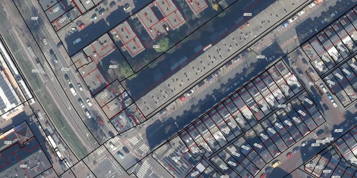 Het adres ligt op het perceel GVH08-L-13068, dat zich in de kadastrale gemeente 's-Gravenhage bevindt. Het perceel is met 3580 m² relatief groot. Het gemiddelde ligt in de kadastrale gemeente 's-Gravenhage op 468,2 m². De grootste perceeloppervlakte in de kadastrale gemeente is 3,8 ha. De kleinste oppervlakte bedraagt 0 m². Op het perceel zijn 49 adressen aanwezig. De laatste wijziging in het de Basisregistratie Kadaster (BRK) was op 29-05-2006.