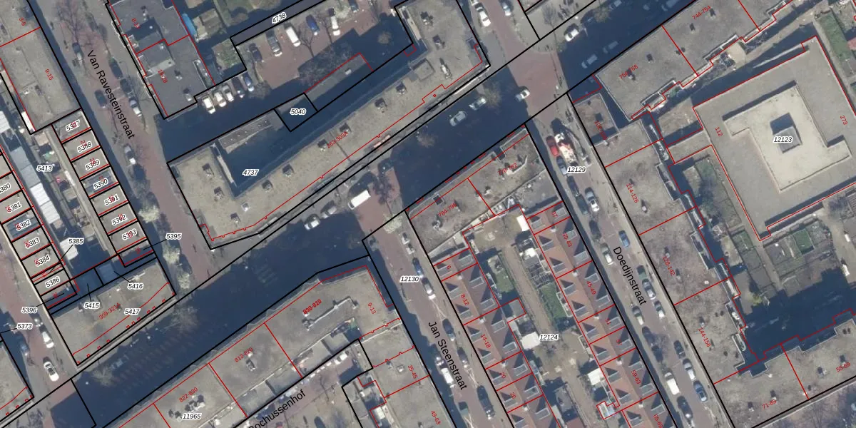 Het perceel waarop het adres ligt is GVH08-L-12124. De afkorting 'GVH08' staat voor kadastrale gemeente 's-Gravenhage. De gemiddelde perceeloppervlakte in de kadastrale gemeente 's-Gravenhage is 468,2 m². Dit perceel is met zijn 2894 m² dus groter dan gemiddeld. Het kleinste perceel in de kadastrale gemeente is 0 m² groot. De grootste perceeloppervlakte is 3,8 ha. Er zijn 48 adressen aanwezig op het perceel. In de Basisregistratie Kadaster (BRK) werden de grenzen van het perceel geregistreerd op 14-04-2010.