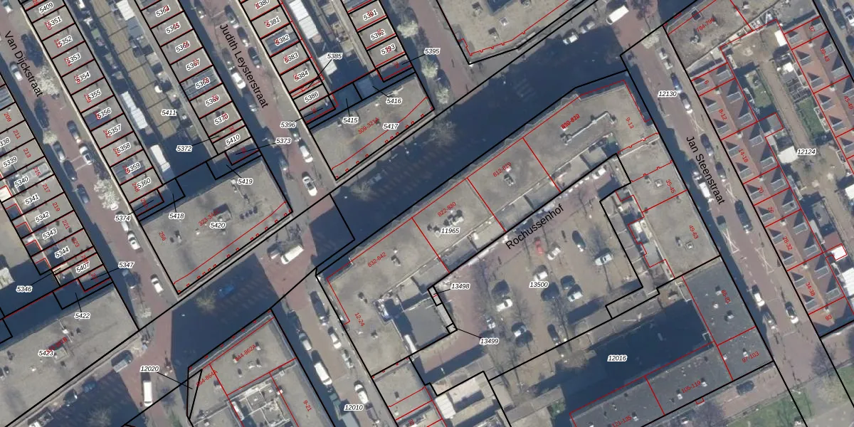 Het adres ligt op het perceel GVH08-L-11965, dat zich in de kadastrale gemeente 's-Gravenhage bevindt. De oppervlakte van het perceel is 2415 m². Dat is groter dan gemiddeld in 's-Gravenhage, waar de gemiddelde perceeloppervlakte op 468,2 m² ligt. Het grootste perceel in de kadastrale gemeente is 3,8 ha. Het kleinste perceel heeft een oppervlakte van 0 m². Op het perceel liggen in totaal 56 adressen. In de Basisregistratie Kadaster (BRK) werden de grenzen van het perceel geregistreerd op 26-06-2020.