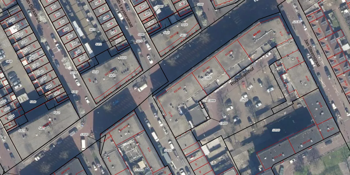 Het adres ligt op het perceel GVH08-L-11965, dat zich in de kadastrale gemeente 's-Gravenhage bevindt. De oppervlakte van het perceel is 2415 m². Dat is groter dan gemiddeld in 's-Gravenhage, waar de gemiddelde perceeloppervlakte op 468,2 m² ligt. Het kleinste perceel in de kadastrale gemeente is 0 m² groot. De grootste perceeloppervlakte is 3,8 ha. Er zijn 56 adressen aanwezig op het perceel. In de Basisregistratie Kadaster (BRK) werden de grenzen van het perceel geregistreerd op 26-06-2020.