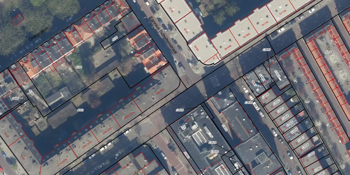 Het adres ligt op het perceel GVH21-AD-4002, dat zich in de kadastrale gemeente 's-Gravenhage bevindt. De gemiddelde perceeloppervlakte in de kadastrale gemeente 's-Gravenhage is 908,69 m². Dit perceel is met zijn 3041 m² dus groter dan gemiddeld. Het kleinste perceel in de kadastrale gemeente is 0 m² groot. De grootste perceeloppervlakte is 9,1 ha. Op het perceel zijn 76 adressen aanwezig. In de Basisregistratie Kadaster (BRK) werden de grenzen van het perceel geregistreerd op 01-12-2003.