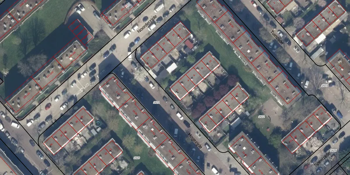 Het perceel waarop Hogezijde 2 staat heeft een oppervlakte van 6583 m². Dit is een zeer groot perceel. De perceeloppervlakte wordt geregistreerd door het Kadaster. Gedetailleerde informatie over de maten van dit perceel kunt u vinden in het rapport Kadastrale kaart met maatvoering van Hogezijde 2.