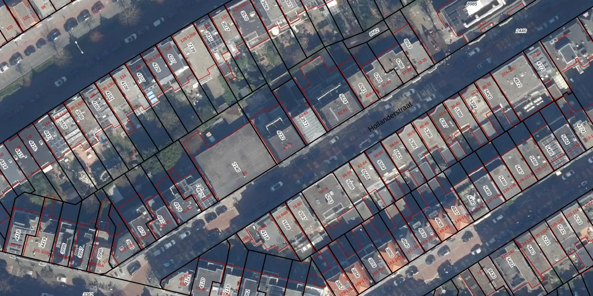 Het perceel waarop Hollanderstraat 71 staat heeft een oppervlakte van 294 m². Dit is een middelgroot perceel. De perceeloppervlakte wordt geregistreerd door het Kadaster. Gedetailleerde informatie over de maten van dit perceel kunt u vinden in het rapport Kadastrale kaart met maatvoering van Hollanderstraat 71.