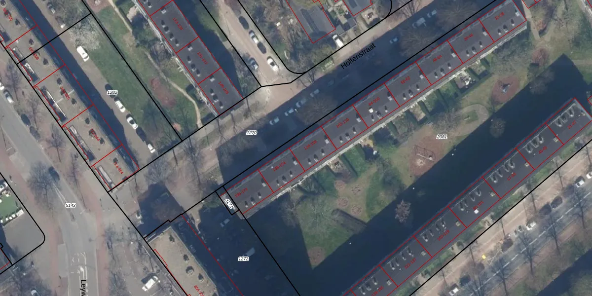 Holtenstraat 134 is gelegen op kadastraal perceel GVH37AW2081. Deze kadastrale aanduiding is uniek en wordt gebruikt door het Kadaster om eigendomsrechten en andere zakelijke rechten vast te leggen. Het perceel maakt onderdeel uit van de kadastrale gemeente 's-Gravenhage.
