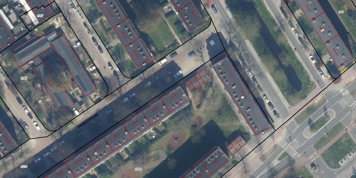Holtenstraat 16 is gelegen op kadastraal perceel GVH37AW2081. Deze kadastrale aanduiding is uniek en wordt gebruikt door het Kadaster om eigendomsrechten en andere zakelijke rechten vast te leggen. Het perceel maakt onderdeel uit van de kadastrale gemeente 's-Gravenhage.