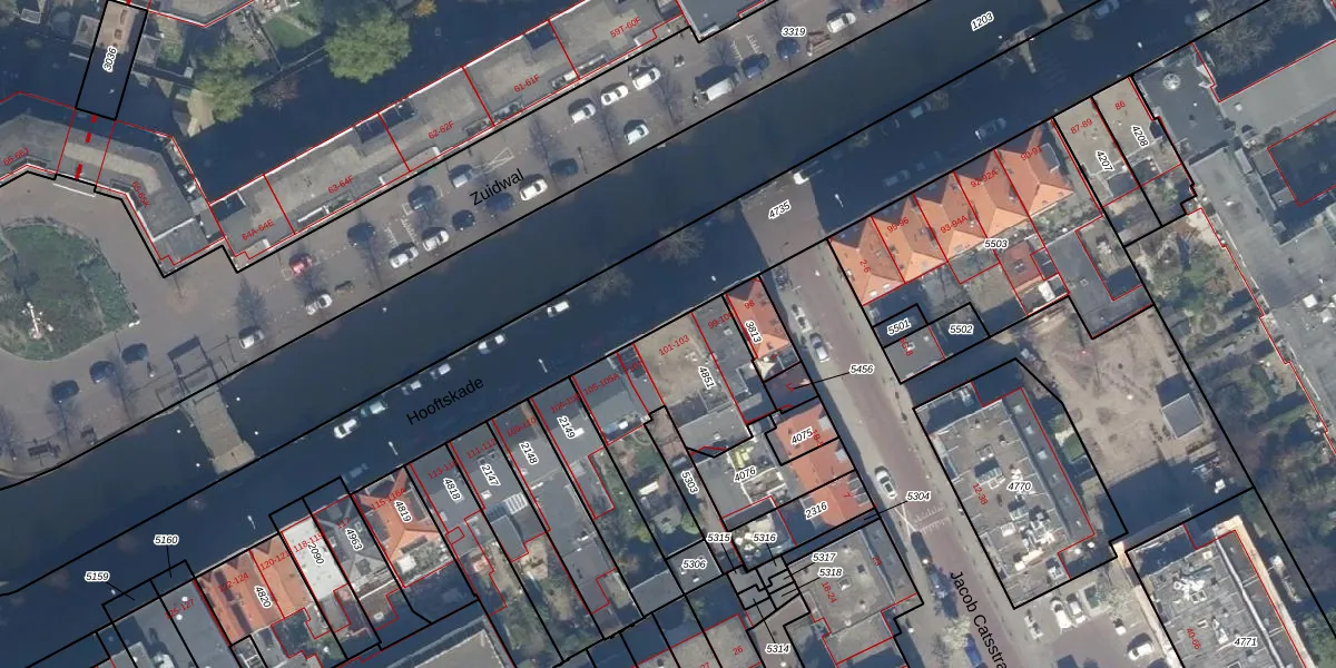 Het perceel waarop Hooftskade 102 staat heeft een oppervlakte van 558 m². Dit is een groot perceel. De perceeloppervlakte wordt geregistreerd door het Kadaster. Gedetailleerde informatie over de maten van dit perceel kunt u vinden in het rapport Kadastrale kaart met maatvoering van Hooftskade 102.