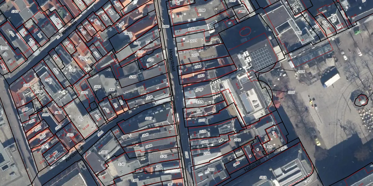 Het perceel waarop Hoogstraat 17 staat heeft een oppervlakte van 1391 m². Dit is een zeer groot perceel. De perceeloppervlakte wordt geregistreerd door het Kadaster. Gedetailleerde informatie over de maten van dit perceel kunt u vinden in het rapport Kadastrale kaart met maatvoering van Hoogstraat 17.