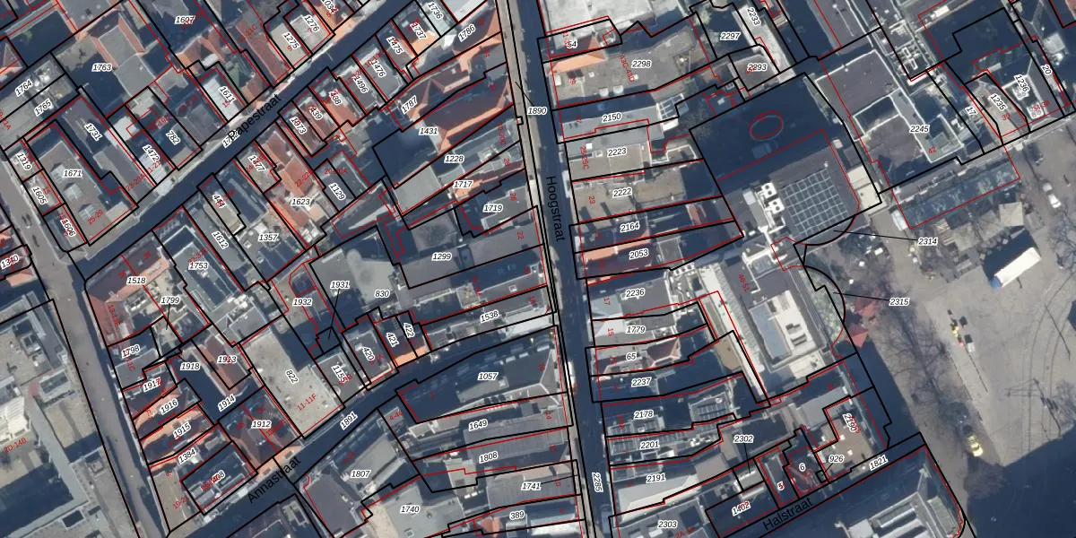 Het perceel waarop Hoogstraat 20 staat heeft een oppervlakte van 380 m². Dit is een groot perceel. De perceeloppervlakte wordt geregistreerd door het Kadaster. Gedetailleerde informatie over de maten van dit perceel kunt u vinden in het rapport Kadastrale kaart met maatvoering van Hoogstraat 20.