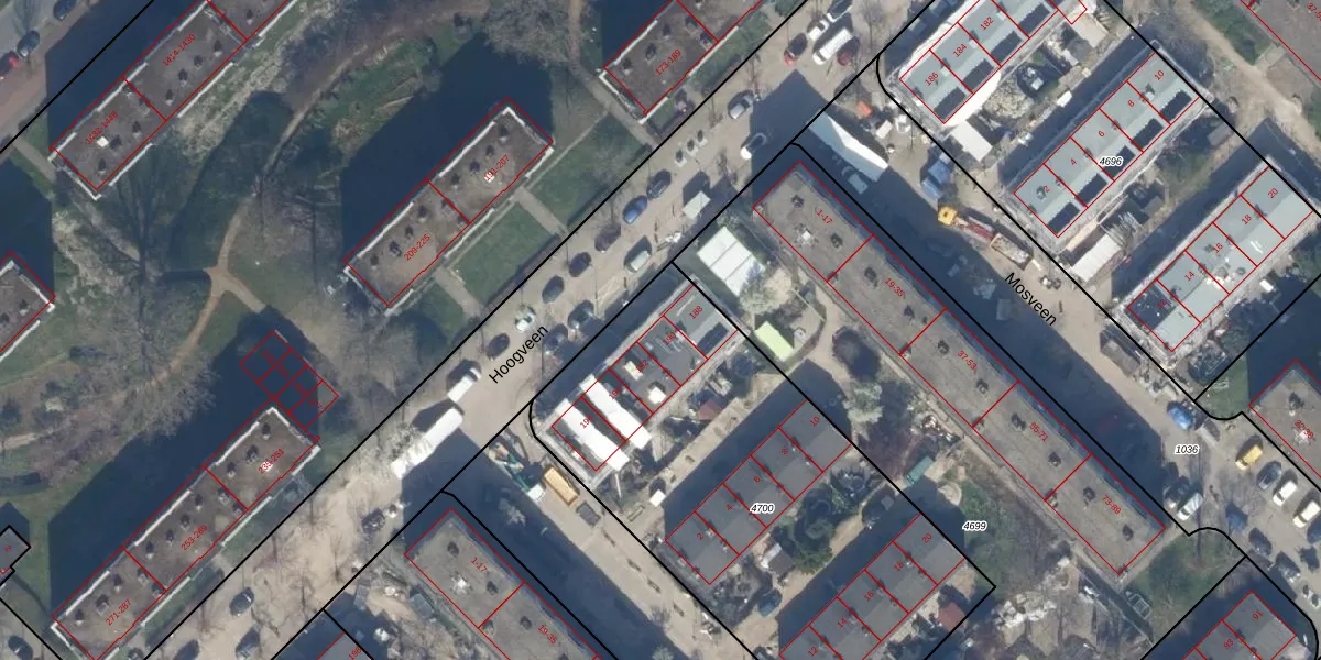 Hoogveen 190 is gelegen op kadastraal perceel GVH37AW4700. Deze kadastrale aanduiding is uniek en wordt gebruikt door het Kadaster om eigendomsrechten en andere zakelijke rechten vast te leggen. Het perceel maakt onderdeel uit van de kadastrale gemeente 's-Gravenhage.