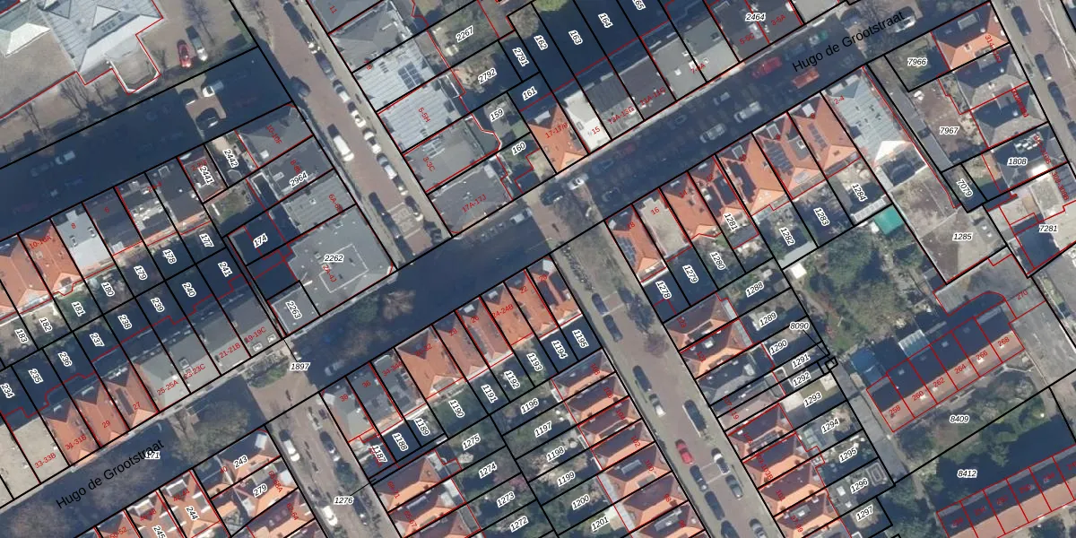 Hugo de Grootstraat 20 is gelegen op kadastraal perceel GVH18Z1195. Deze kadastrale aanduiding is uniek en wordt gebruikt door het Kadaster om eigendomsrechten en andere zakelijke rechten vast te leggen. Het perceel maakt onderdeel uit van de kadastrale gemeente 's-Gravenhage.
