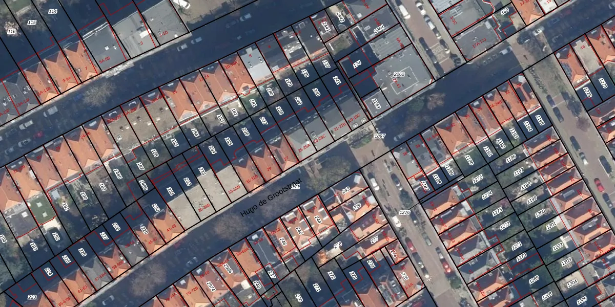 Het perceel waarop Hugo de Grootstraat 25 staat heeft een oppervlakte van 132 m². Dit is een middelgroot perceel. De perceeloppervlakte wordt geregistreerd door het Kadaster. Gedetailleerde informatie over de maten van dit perceel kunt u vinden in het rapport Kadastrale kaart met maatvoering van Hugo de Grootstraat 25.