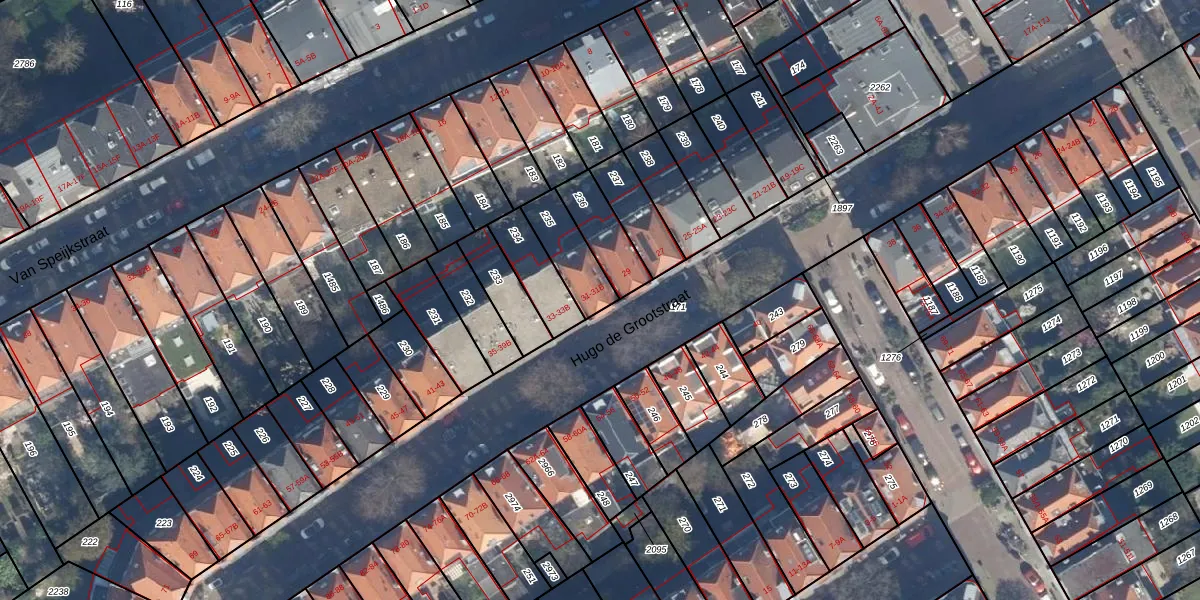 Hugo de Grootstraat 31 is gelegen op kadastraal perceel GVH18Z235. Deze kadastrale aanduiding is uniek en wordt gebruikt door het Kadaster om eigendomsrechten en andere zakelijke rechten vast te leggen. Het perceel maakt onderdeel uit van de kadastrale gemeente 's-Gravenhage.
