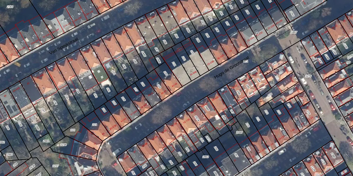 Het perceel waarop Hugo de Grootstraat 43 staat heeft een oppervlakte van 123 m². Dit is een middelgroot perceel. De perceeloppervlakte wordt geregistreerd door het Kadaster. Gedetailleerde informatie over de maten van dit perceel kunt u vinden in het rapport Kadastrale kaart met maatvoering van Hugo de Grootstraat 43.