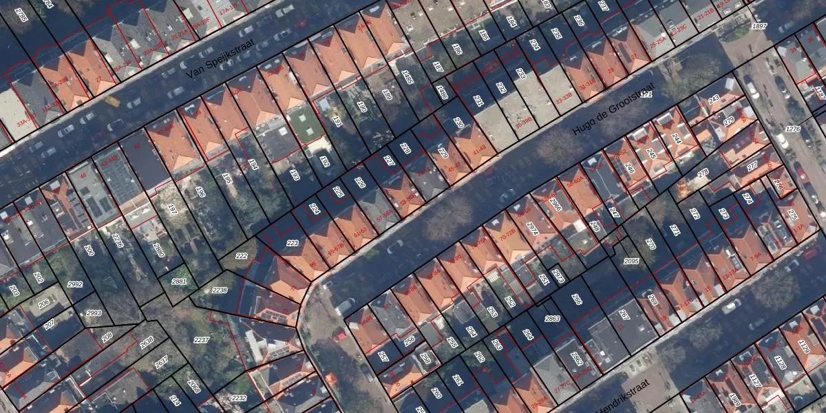 Hugo de Grootstraat 53 is gelegen op kadastraal perceel GVH18Z227. Deze kadastrale aanduiding is uniek en wordt gebruikt door het Kadaster om eigendomsrechten en andere zakelijke rechten vast te leggen. Het perceel maakt onderdeel uit van de kadastrale gemeente 's-Gravenhage.