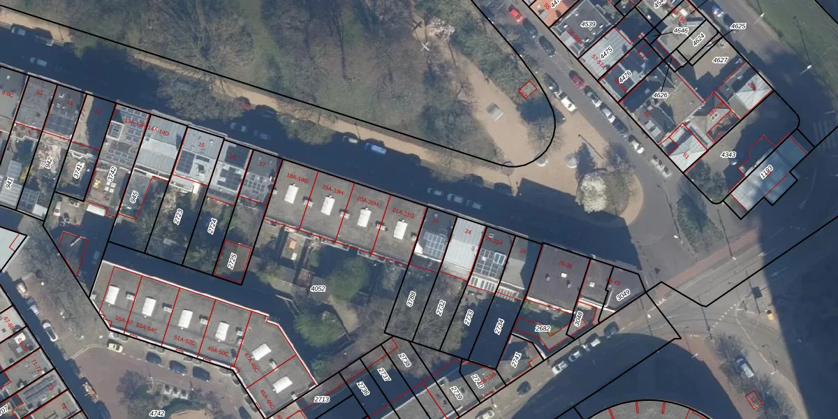 Het perceel waarop Huijgensstraat 21-A staat heeft een oppervlakte van 2496 m². Dit is een zeer groot perceel. De perceeloppervlakte wordt geregistreerd door het Kadaster. Gedetailleerde informatie over de maten van dit perceel kunt u vinden in het rapport Kadastrale kaart met maatvoering van Huijgensstraat 21-A.