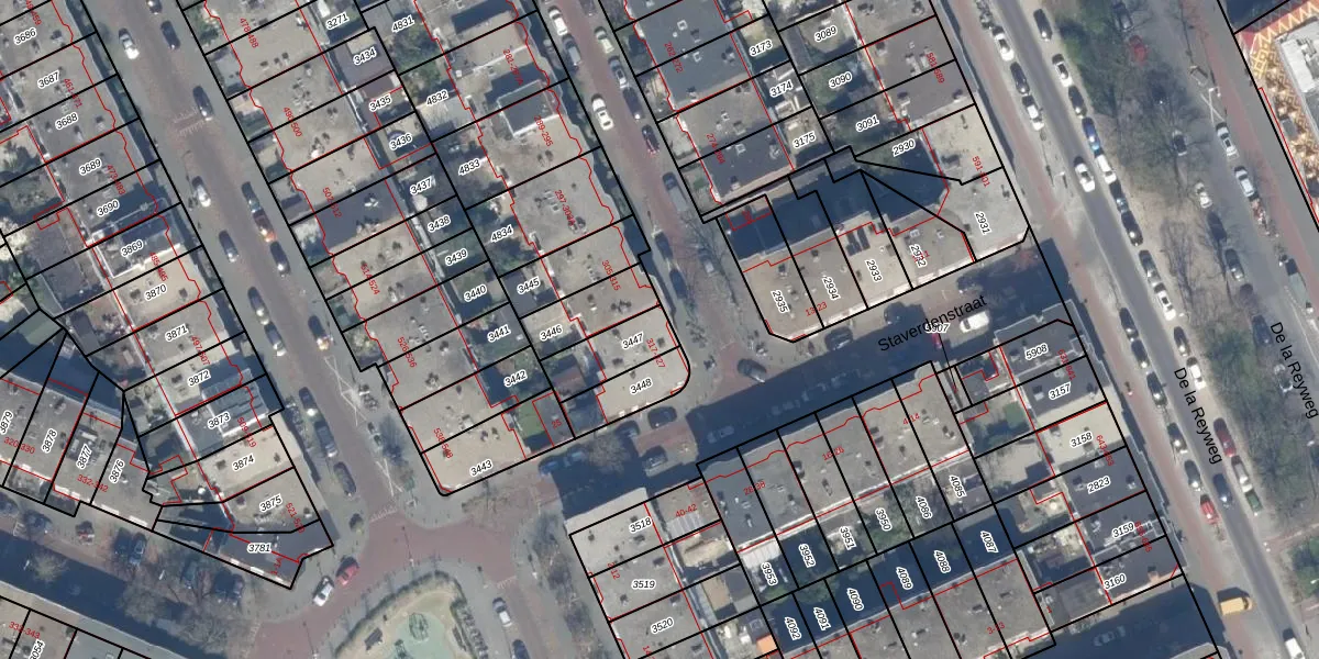 Het perceel waarop het adres ligt is GVH28-AL-3447. De afkorting 'GVH28' staat voor kadastrale gemeente 's-Gravenhage. Het perceel is 142 m² groot. Dat is kleiner dan de gemiddelde perceeloppervlakte in 's-Gravenhage, dat op 722,74 m² ligt. Het kleinste perceel in de kadastrale gemeente is 0 m² groot. De grootste perceeloppervlakte is 89,9 ha. Op het perceel zijn 3 adressen aanwezig. De laatste wijziging in het de Basisregistratie Kadaster (BRK) was op 10-12-2002.