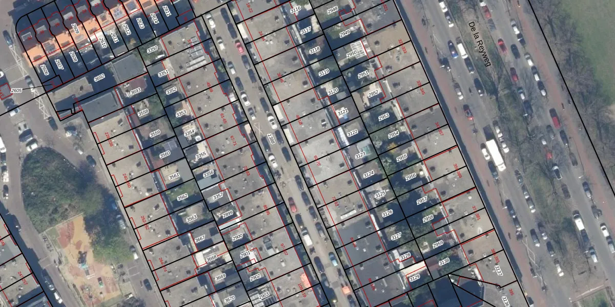 Het perceel waarop het adres ligt is GVH28-AL-3122. De afkorting 'GVH28' staat voor kadastrale gemeente 's-Gravenhage. Het perceel is 183 m² groot. Dat is kleiner dan de gemiddelde perceeloppervlakte in 's-Gravenhage, dat op 722,74 m² ligt. Het grootste perceel in de kadastrale gemeente is 89,9 ha. Het kleinste perceel heeft een oppervlakte van 0 m². Er zijn 3 adressen aanwezig op het perceel. De huidige grenzen van het perceel zijn digitaal in de Basisregistratie Kadaster (BRK) geregistreerd op 10-12-2002.