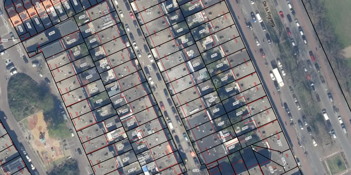 Het adres is gelegen op perceel 3123 in de sectie AL en de kadastrale gemeente 's-Gravenhage. De kadastrale aanduiding is aldus GVH28-AL-3123. Het perceel is 182 m² groot. Dat is kleiner dan de gemiddelde perceeloppervlakte in 's-Gravenhage, dat op 722,74 m² ligt. Het kleinste perceel in de kadastrale gemeente is 0 m² groot. De grootste perceeloppervlakte is 89,9 ha. Op het perceel zijn 3 adressen aanwezig. De huidige grenzen van het perceel zijn digitaal in de Basisregistratie Kadaster (BRK) geregistreerd op 10-12-2002.