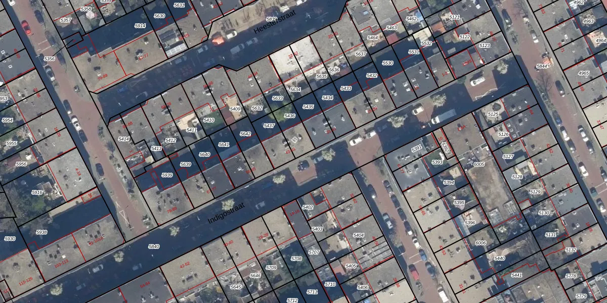 Indigostraat 45 is gelegen op kadastraal perceel GVH29AM5436. Deze kadastrale aanduiding is uniek en wordt gebruikt door het Kadaster om eigendomsrechten en andere zakelijke rechten vast te leggen. Het perceel maakt onderdeel uit van de kadastrale gemeente 's-Gravenhage.