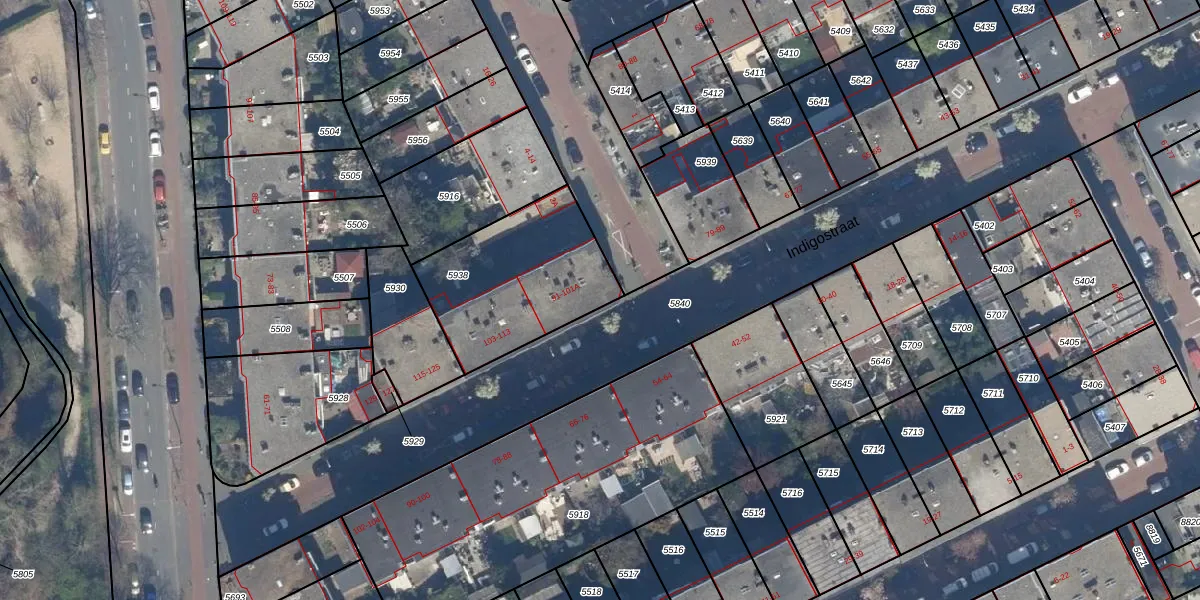Indigostraat 95 is gelegen op kadastraal perceel GVH29AM5938. Deze kadastrale aanduiding is uniek en wordt gebruikt door het Kadaster om eigendomsrechten en andere zakelijke rechten vast te leggen. Het perceel maakt onderdeel uit van de kadastrale gemeente 's-Gravenhage.