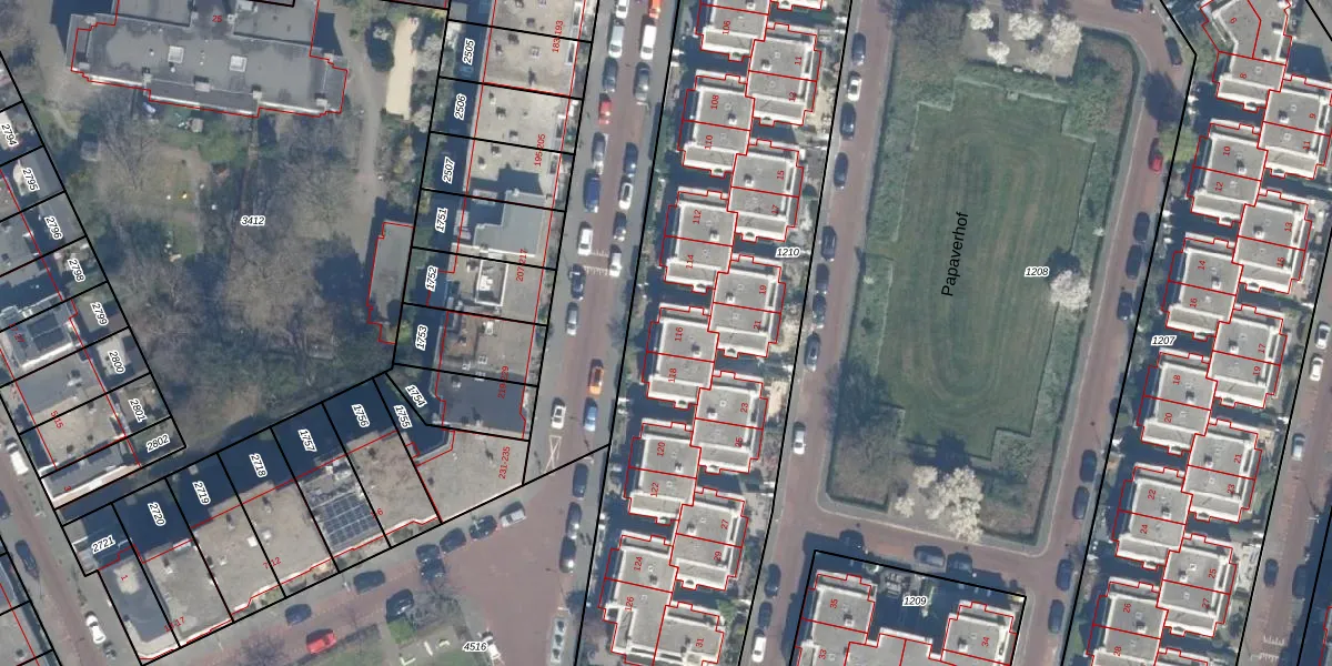 Het perceel waarop het adres ligt is GVH30-AN-1210. De afkorting 'GVH30' staat voor kadastrale gemeente 's-Gravenhage. Het perceel is met 3950 m² relatief groot. Het gemiddelde ligt in de kadastrale gemeente 's-Gravenhage op 453,11 m². Het grootste perceel in de kadastrale gemeente is 8,4 ha. Het kleinste perceel heeft een oppervlakte van 2 m². Op het perceel liggen in totaal 32 adressen. De huidige grenzen van het perceel zijn digitaal in de Basisregistratie Kadaster (BRK) geregistreerd op 09-05-2003.