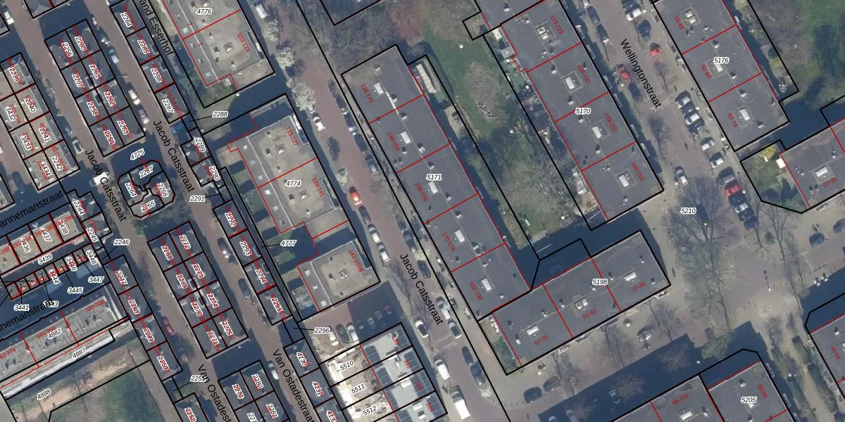 Jacob Catsstraat 166 is gelegen op kadastraal perceel GVH22AE5171. Deze kadastrale aanduiding is uniek en wordt gebruikt door het Kadaster om eigendomsrechten en andere zakelijke rechten vast te leggen. Het perceel maakt onderdeel uit van de kadastrale gemeente 's-Gravenhage.