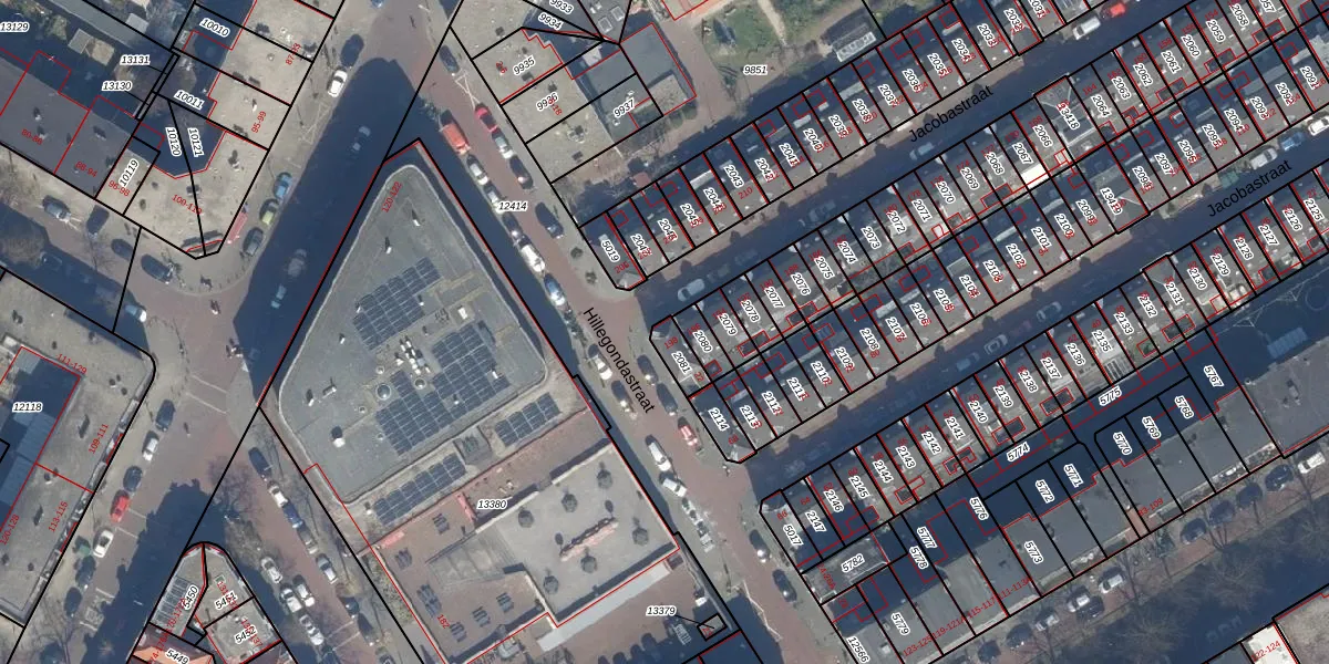 Het perceel waarop Jacobastraat 198 staat heeft een oppervlakte van 55 m². Dit is een klein perceel. De perceeloppervlakte wordt geregistreerd door het Kadaster. Gedetailleerde informatie over de maten van dit perceel kunt u vinden in het rapport Kadastrale kaart met maatvoering van Jacobastraat 198.