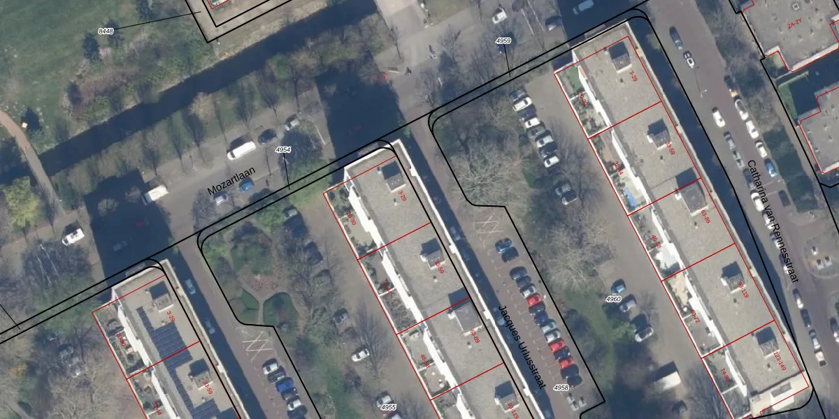 Het perceel waarop Jacques Urlusstraat 21 staat heeft een oppervlakte van 4537 m². Dit is een zeer groot perceel. De perceeloppervlakte wordt geregistreerd door het Kadaster. Gedetailleerde informatie over de maten van dit perceel kunt u vinden in het rapport Kadastrale kaart met maatvoering van Jacques Urlusstraat 21.