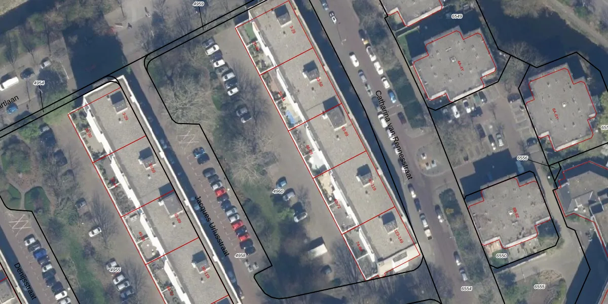Het perceel waarop Jacques Urlusstraat 52 staat heeft een oppervlakte van 5012 m². Dit is een zeer groot perceel. De perceeloppervlakte wordt geregistreerd door het Kadaster. Gedetailleerde informatie over de maten van dit perceel kunt u vinden in het rapport Kadastrale kaart met maatvoering van Jacques Urlusstraat 52.