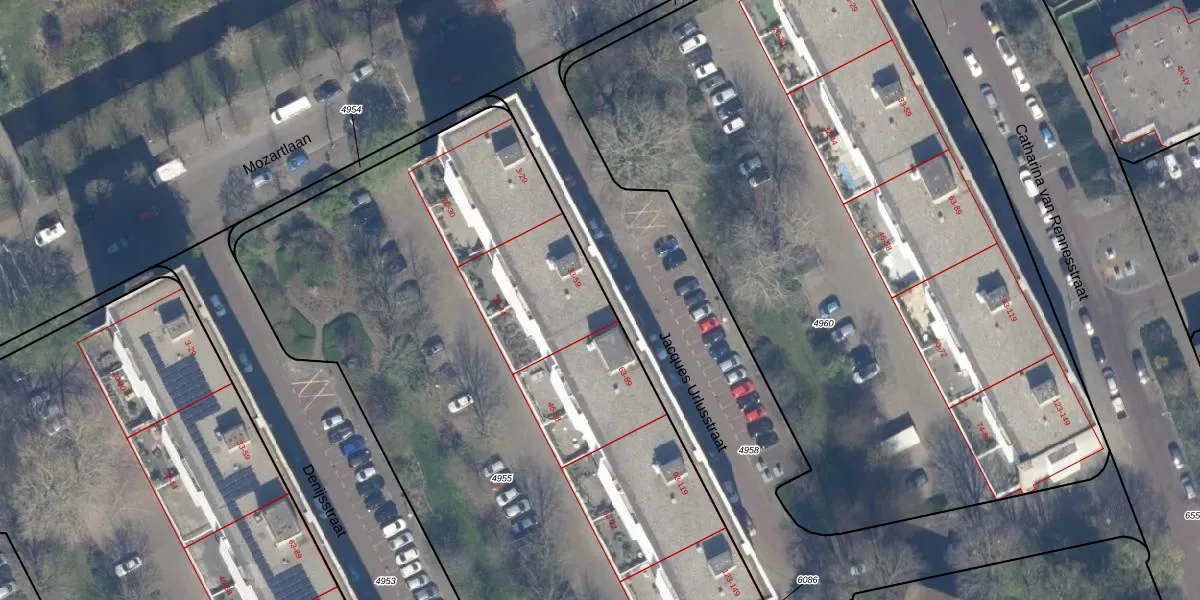 Het perceel waarop Jacques Urlusstraat 55 staat heeft een oppervlakte van 4537 m². Dit is een zeer groot perceel. De perceeloppervlakte wordt geregistreerd door het Kadaster. Gedetailleerde informatie over de maten van dit perceel kunt u vinden in het rapport Kadastrale kaart met maatvoering van Jacques Urlusstraat 55.