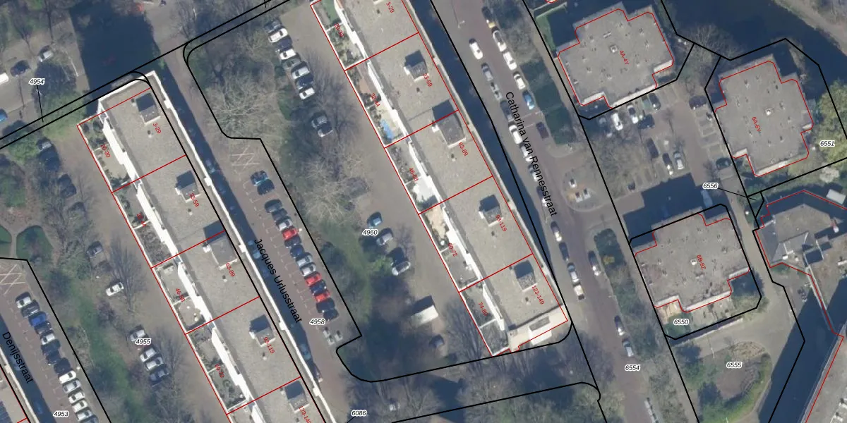 Het perceel waarop Jacques Urlusstraat 58 staat heeft een oppervlakte van 5012 m². Dit is een zeer groot perceel. De perceeloppervlakte wordt geregistreerd door het Kadaster. Gedetailleerde informatie over de maten van dit perceel kunt u vinden in het rapport Kadastrale kaart met maatvoering van Jacques Urlusstraat 58.