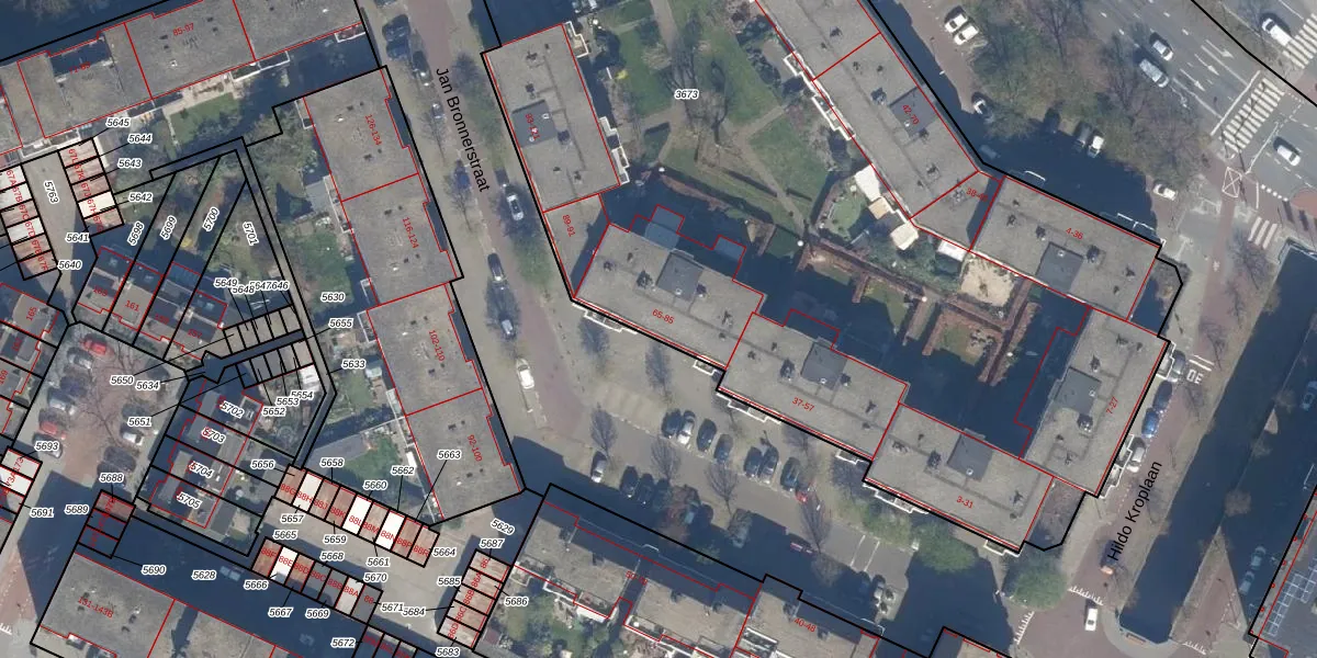 Het perceel waarop Jan Bronnerstraat 77 staat heeft een oppervlakte van 8935 m². Dit is een zeer groot perceel. De perceeloppervlakte wordt geregistreerd door het Kadaster. Gedetailleerde informatie over de maten van dit perceel kunt u vinden in het rapport Kadastrale kaart met maatvoering van Jan Bronnerstraat 77.
