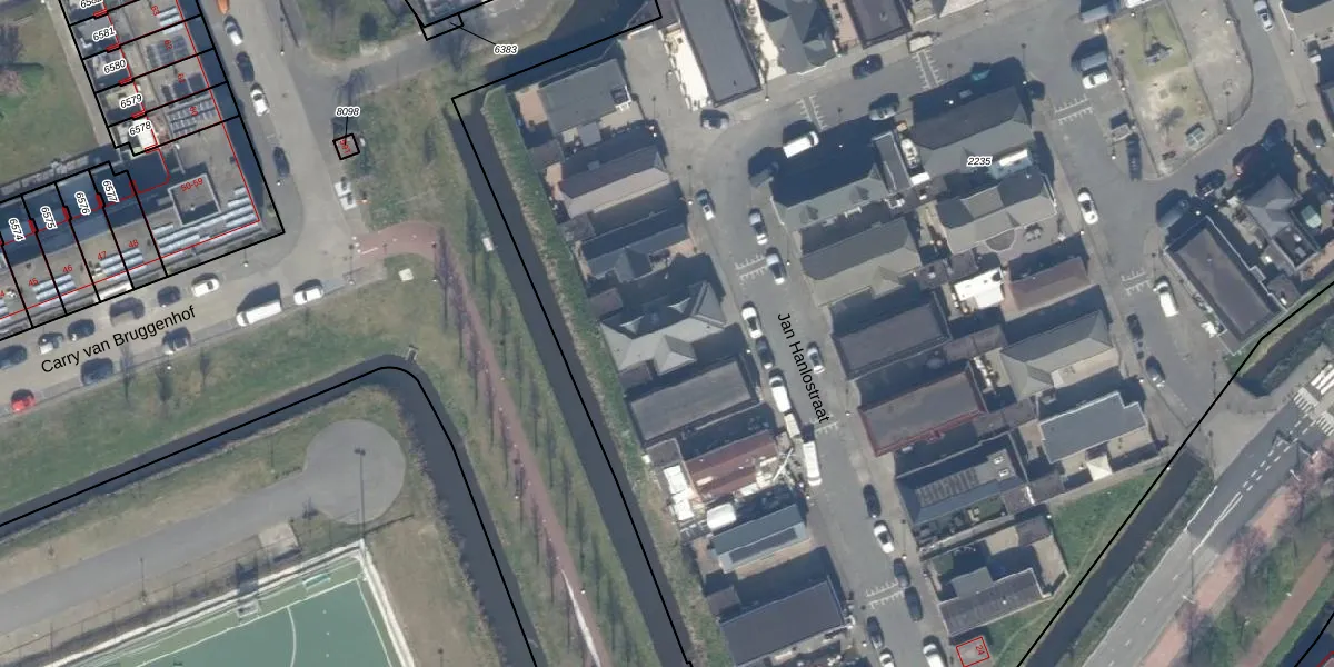 Het perceel waarop Jan Hanlostraat 39 staat heeft een oppervlakte van 1,5 ha. Dit is een zeer groot perceel. De perceeloppervlakte wordt geregistreerd door het Kadaster. Gedetailleerde informatie over de maten van dit perceel kunt u vinden in het rapport Kadastrale kaart met maatvoering van Jan Hanlostraat 39.