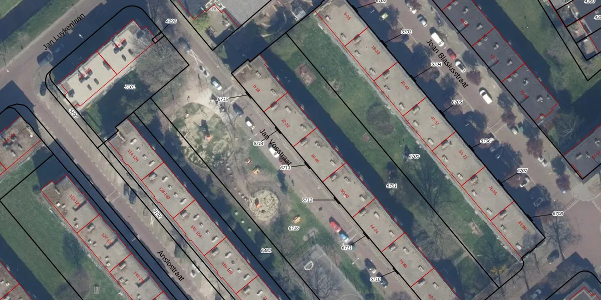 Het perceel waarop Jan Vosstraat 36 staat heeft een oppervlakte van 2470 m². Dit is een zeer groot perceel. De perceeloppervlakte wordt geregistreerd door het Kadaster. Gedetailleerde informatie over de maten van dit perceel kunt u vinden in het rapport Kadastrale kaart met maatvoering van Jan Vosstraat 36.