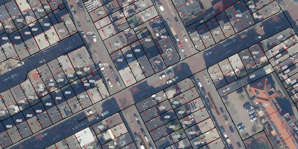 Het perceel waarop Jasmijnstraat 55 staat heeft een oppervlakte van 169 m². Dit is een middelgroot perceel. De perceeloppervlakte wordt geregistreerd door het Kadaster. Gedetailleerde informatie over de maten van dit perceel kunt u vinden in het rapport Kadastrale kaart met maatvoering van Jasmijnstraat 55.