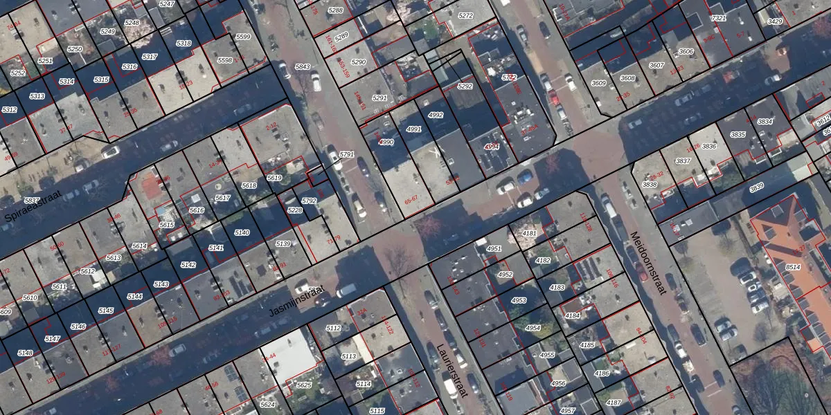 Jasmijnstraat 65 is gelegen op kadastraal perceel GVH29AM4990. Deze kadastrale aanduiding is uniek en wordt gebruikt door het Kadaster om eigendomsrechten en andere zakelijke rechten vast te leggen. Het perceel maakt onderdeel uit van de kadastrale gemeente 's-Gravenhage.