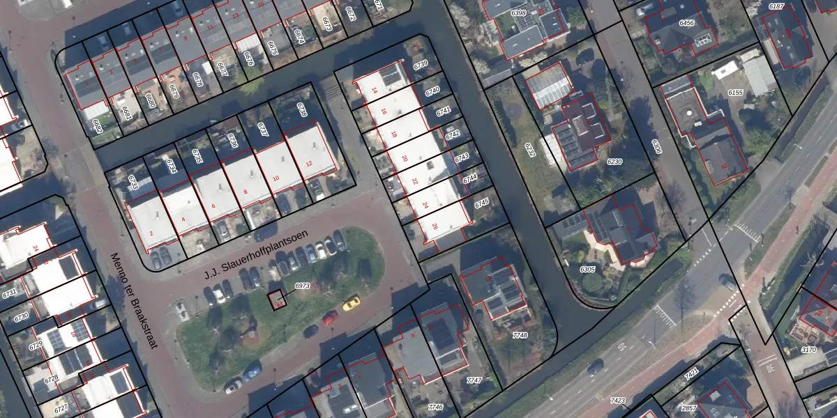 Gebruik de zoekbalk of klik op een perceel voor informatie over de adressen binnen dit perceel.
