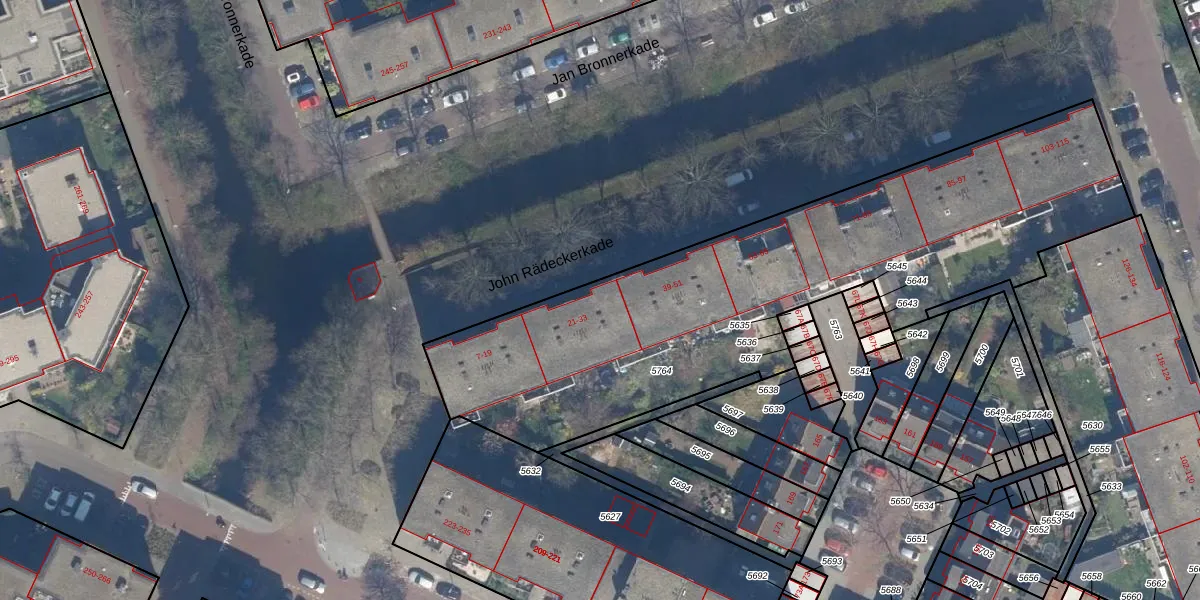 Het perceel waarop John Rädeckerkade 29 staat heeft een oppervlakte van 2573 m². Dit is een zeer groot perceel. De perceeloppervlakte wordt geregistreerd door het Kadaster. Gedetailleerde informatie over de maten van dit perceel kunt u vinden in het rapport Kadastrale kaart met maatvoering van John Rädeckerkade 29.