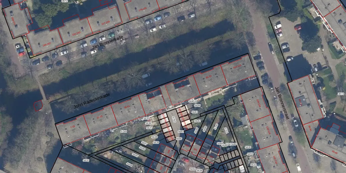 Het perceel waarop John Rädeckerkade 83 staat heeft een oppervlakte van 2573 m². Dit is een zeer groot perceel. De perceeloppervlakte wordt geregistreerd door het Kadaster. Gedetailleerde informatie over de maten van dit perceel kunt u vinden in het rapport Kadastrale kaart met maatvoering van John Rädeckerkade 83.
