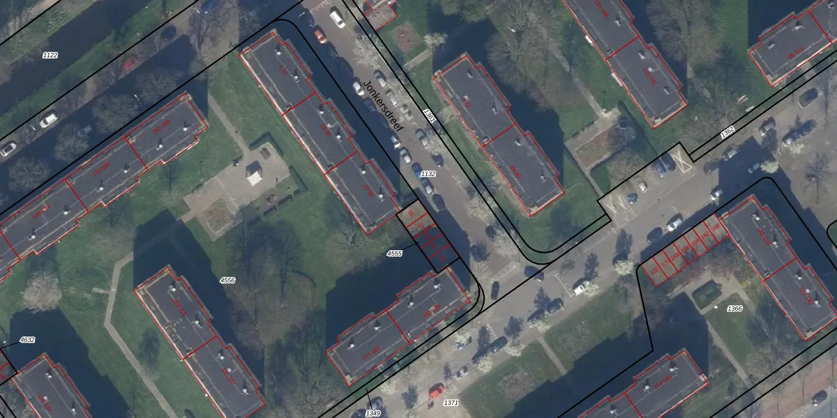 Jonkersdreef 55 is gelegen op kadastraal perceel GVH37AW4555. Deze kadastrale aanduiding is uniek en wordt gebruikt door het Kadaster om eigendomsrechten en andere zakelijke rechten vast te leggen. Het perceel maakt onderdeel uit van de kadastrale gemeente 's-Gravenhage.