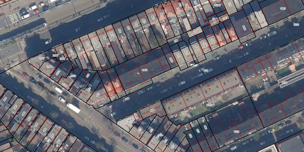 Het perceel waarop Joubertstraat 175 staat heeft een oppervlakte van 634 m². Dit is een groot perceel. De perceeloppervlakte wordt geregistreerd door het Kadaster. Gedetailleerde informatie over de maten van dit perceel kunt u vinden in het rapport Kadastrale kaart met maatvoering van Joubertstraat 175.