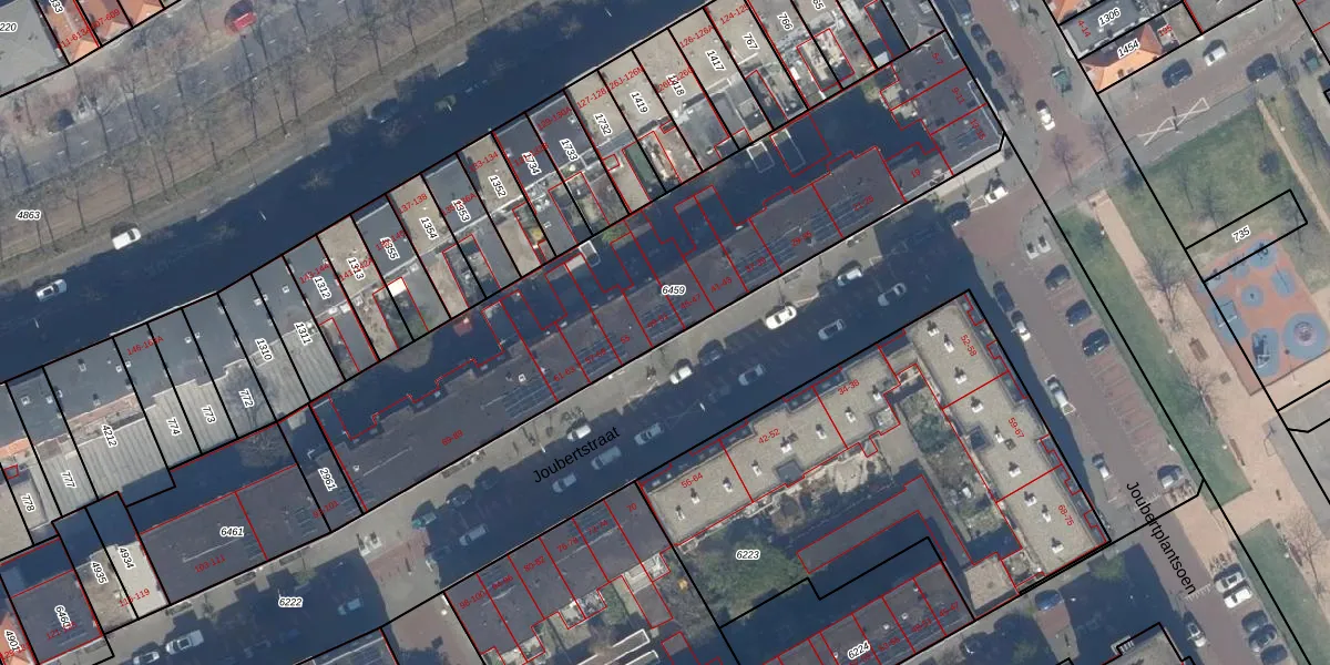 Joubertstraat 49 is gelegen op kadastraal perceel GVH19AB6459. Deze kadastrale aanduiding is uniek en wordt gebruikt door het Kadaster om eigendomsrechten en andere zakelijke rechten vast te leggen. Het perceel maakt onderdeel uit van de kadastrale gemeente 's-Gravenhage.